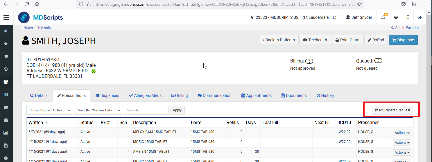 3) Enter Prescriptions for Transfer