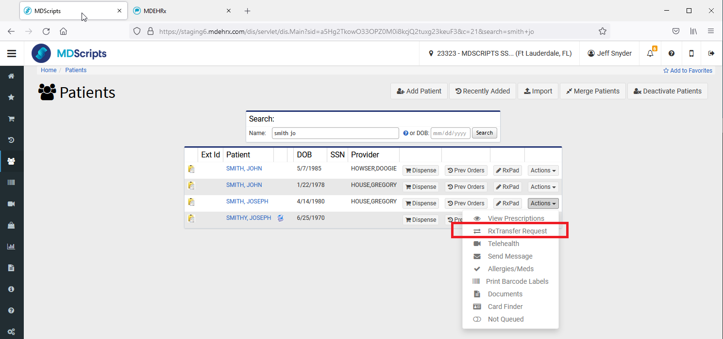 From Prescriptions tab under Patient Profile, select the Rx Transfer Option