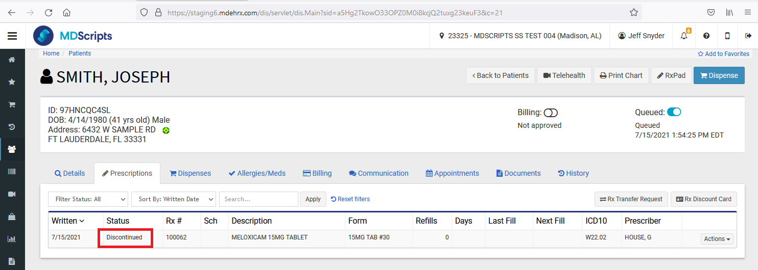 4) Transferred Prescription Marked as Discontinued